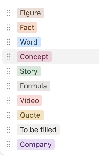 The second set of tags points to the topic it is related to; here I add custom tags each time I input something that doesn’t have a corresponding existing tag: